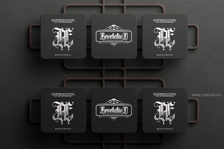 Revelation是一套复古哥特优雅经典神秘的手写字花体字体。金属色泽显得字体干净神秘,银色手写花体字会让您的宣传更加独特。该字体非常适用于产品包装、品牌或其他需要大胆大胆排版的项目。字体格式有:OTF、TTF、WOFF。