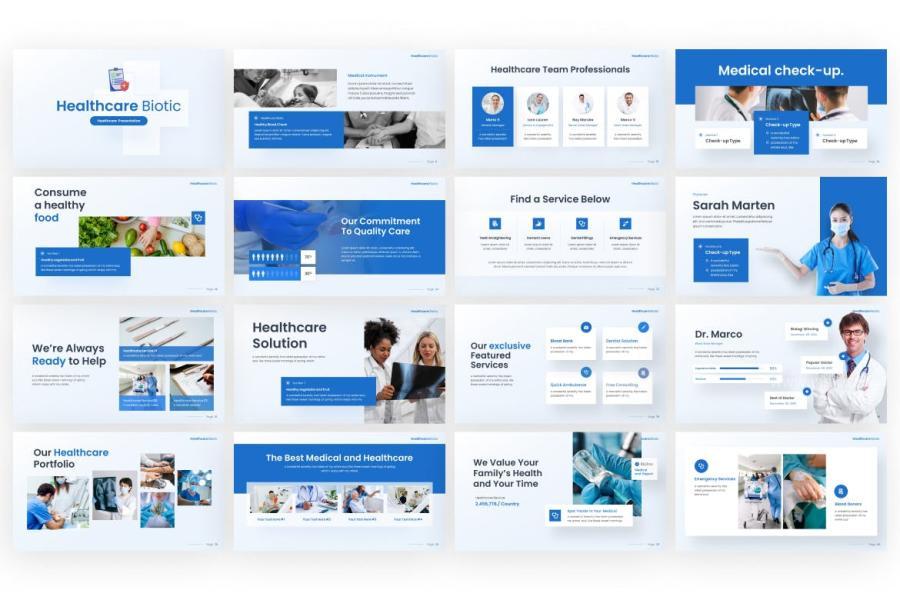 一套生物保健医疗主题的ppt幻灯片模板,总共40 张独特的幻灯片,90 多个 XML 文件(自定义 Ms. Office 主题颜色),浅色和深色背景选项。格式为pptx,尺寸为16:9。模板中的所有摄影配图仅用于预览效果,并未包含在下载的文件中。以下是添加图片安装字体后的预览效果: